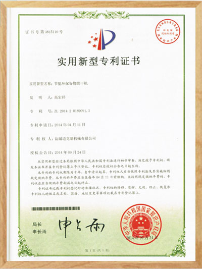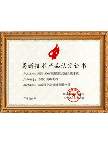 高新技術(shù)產(chǎn)品認(rèn)定證書烘干機(jī)300T