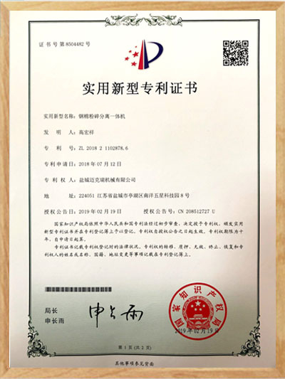 高新技術(shù)產(chǎn)品認(rèn)定證書鋼棉機(jī)